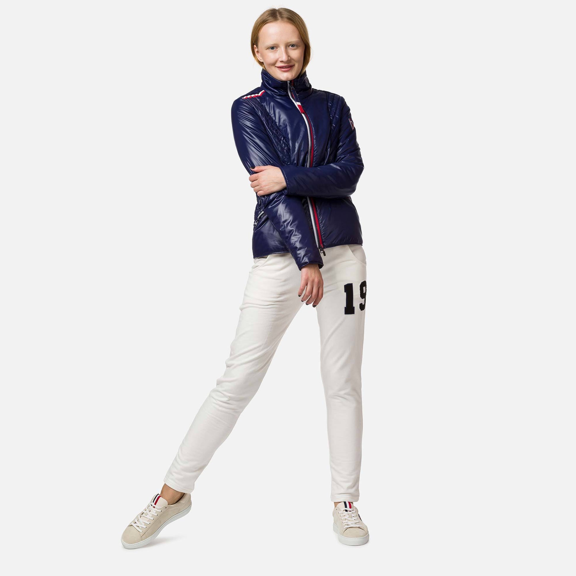 "The women's Verglas Jacket is a lightweight, all-season option for staying warm. It can be worn as a mid-layer under your ski jacket or anytime you need a thin, warm, and lightweight layer. The jacket features waterproof zippers and a soft, waterproof ripstop shell to keep you dry, while the premium high-loft down ensures you stay warm. The traditional quilting and Signature Rossignol tricolor stripes add classic ski style.